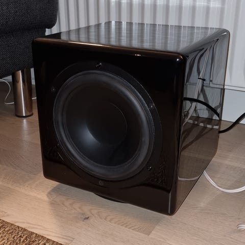 Det er ellers en fin subwoofer. Den er i god stand og spiller godt. 12V trigger. Auto Standby på lydinput, osv.