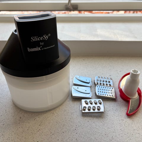 Bamix Baking stavblender med tilbehør til bagning og madlavning. Sættet indeholder stavblender, 4 forskellige knive og piskeris, samt beholdere til opbevaring, processor samt sliceSy med 5 forskellige tilhørende blade.