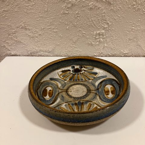 Fadet har en flot håndlavet overflade med nuancer i glasuren, som kendetegner Søholms stentøj fra midten af det 20. århundrede.