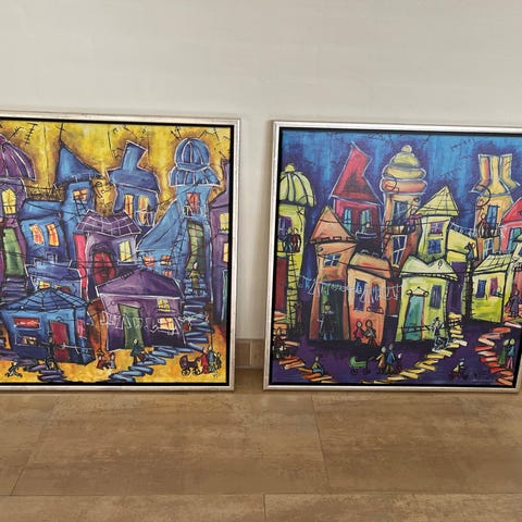 Hver billede måler 46 cm × 36 cm inklusiv ramme.