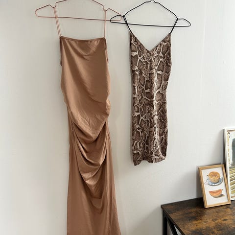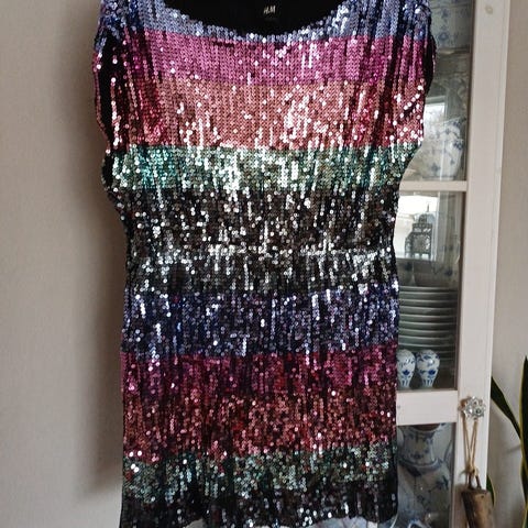 Fest/cocktail kjole i størrelse S/M. Kjolen er multifarvet og lavet af forskelige stoffer. Designet til piger/kvinder.