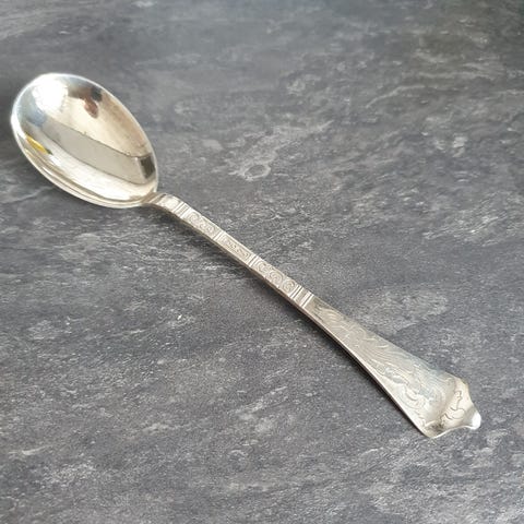 En rigtig fin Kartoffelske/ serveringsske i pletsølv