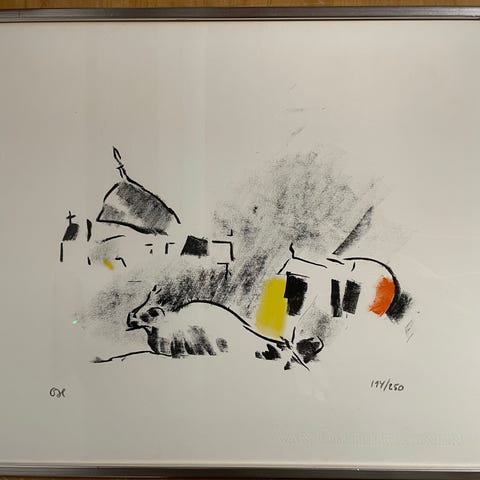 Oluf Høst (f. Svaneke 1884, d. Gudhjem 1966) - komposition. Litografi i farver. Signeret O Høst samt litografi 240/310.