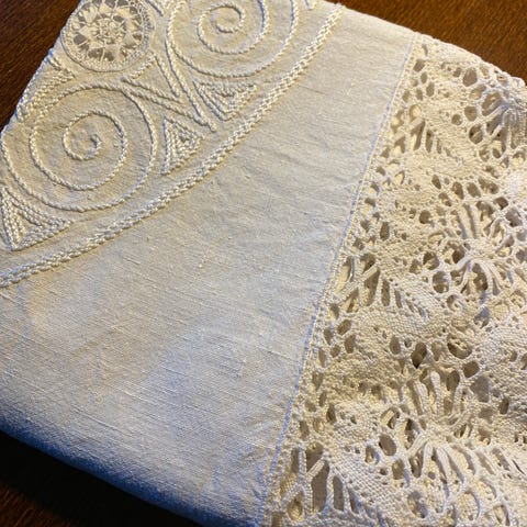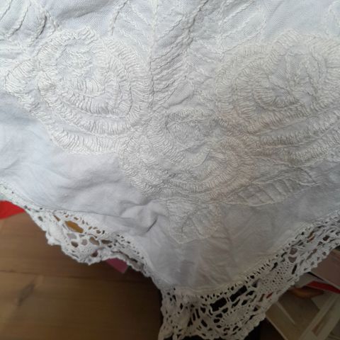 Der er et par mini huller de billede 3 kan måske rep med blå tråd som broderier