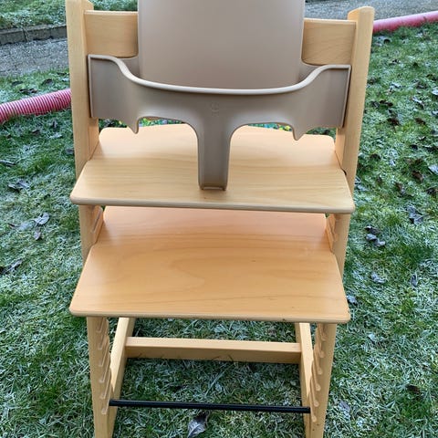 Trip Trap stol med strop Bøjle & Rygstykke samt Hyndesæt som er vasket.🧽