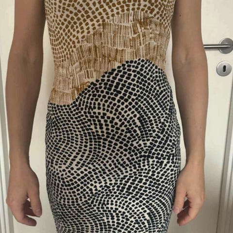 Obs se mål på billeder. Den er meget lårkort til en str large. Vil også kunne bruges som tunika. Med læderleggins under eller lignende. Eller blot som lårkort hvis man tør. Der er lidt formgivende elastik i taljen. Mål er taget hvor elastik strammer ind.