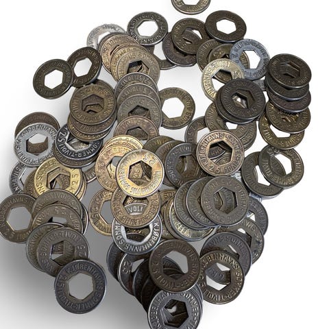 Spil, Skønne gamle spillemønter mm, Sjove gamle danske spillemønter, spillemærker eller jetoner og nogle sjældne og for længst udgået af brug