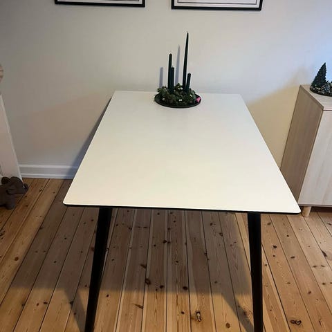 140 længde, 95 i bredde. Fin stand. 2x Sorte stole følges med