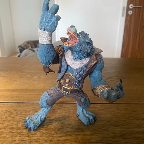 Den er i flot stand men lille dims under fod var mørket og knækkede. Men det gør ingenting han står stadig bund solidt som ses på billedet. Rigtig fed figur!