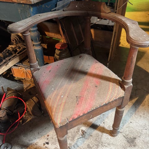 Træstol med armlæn i klassisk design fra slut 1800 til først 1900 tallet