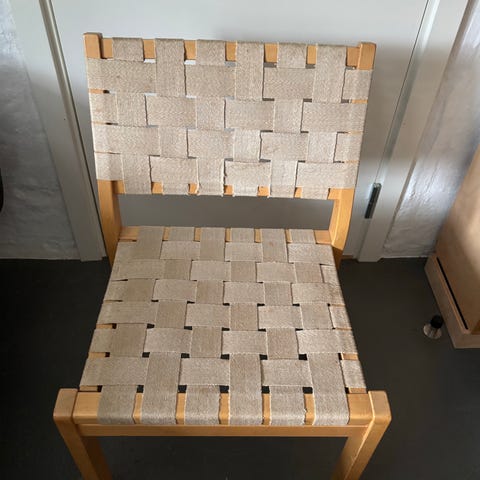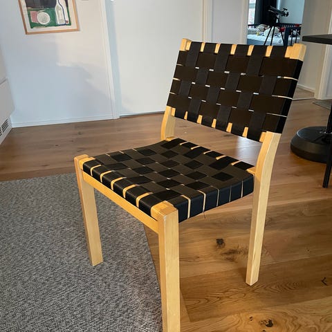IKEA Alvar Aalto stol med sort skal og metalstel