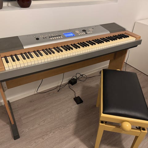Yamaha P-45 B digital klaver i sort farve. Modellen er kendt for sin kompakte størrelse og brugervenlighed, velegnet til både begyndere og øvede musikere.