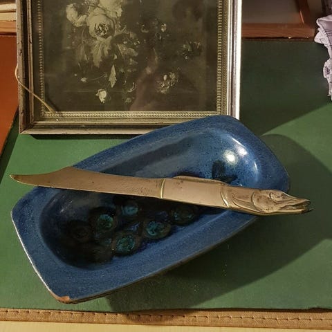 3 - antik brevkniv håndstøbt af messing.