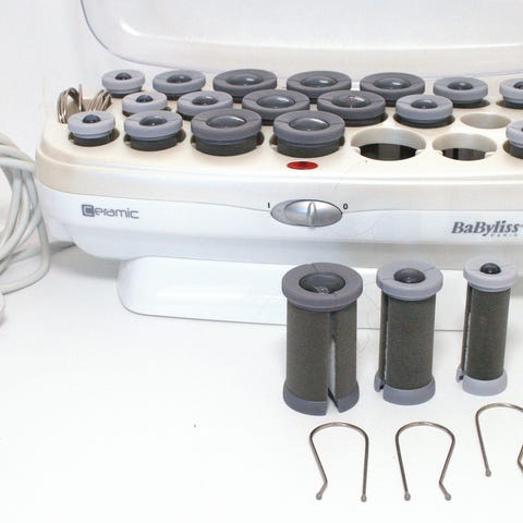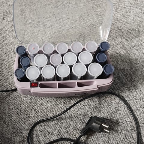 BaByliss hårkrøller med varme ruller til opvarmning af hårkrøller. Enheden har en gennemsigtig låg og flere ruller i forskellige størrelser. Designet til at opvarme og forme håret ved hjælp af varme ruller.