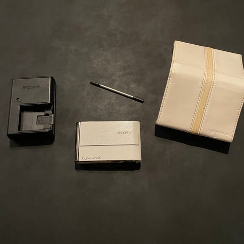 Sony Cyber-shot Exmor 10,2 Mb Digitalkamera i sølv. Kompakt digitalkamera med oplader og 4 GB kort med velholdt skærm på bagsiden. Velegnet til almindelig fotografering og nem at have med på farten.