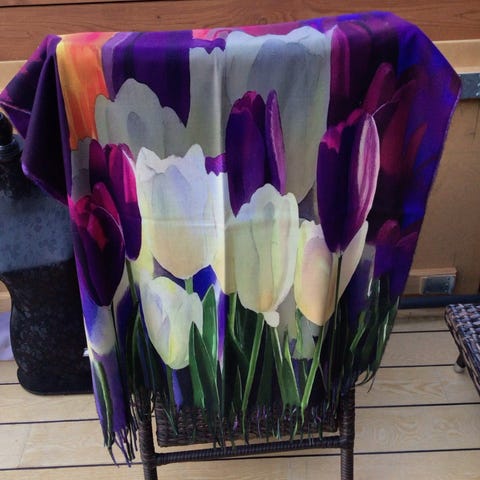 Tørklædet er i 80 % viskose og 20 % uld.