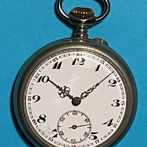 Dobbeltkapslet mekanisk lommeur. Virker perfekt. Fremstillet i Sovjet. Kæde mefølger.