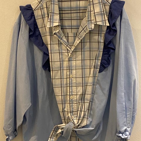 Sort skjorte med flæser lavet af andre skjorter.