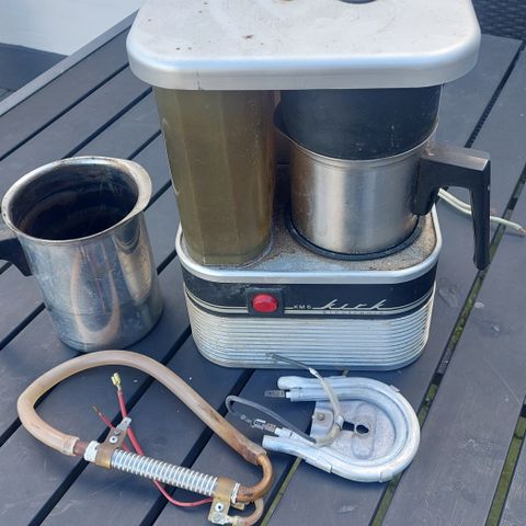 Gammel kaffemølle med lidt gennemtæring i metallet .