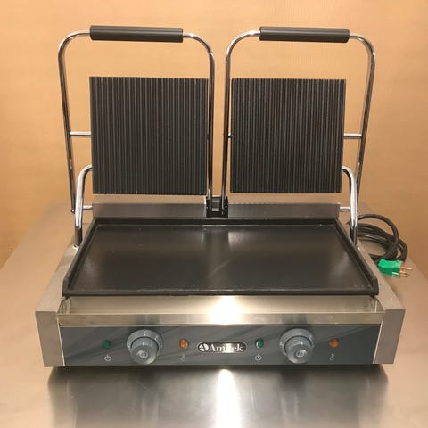 Grillpladen er med slip-belægning, fedtrille og fedtopsamlingsbakke. Der er aftagelig kontakt med justerbar temperaturvælger.