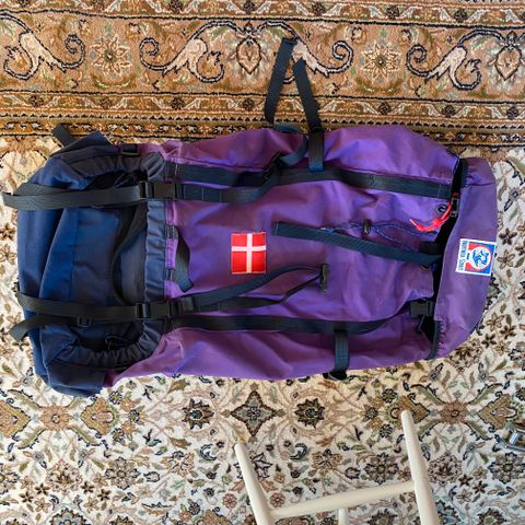Rygsæk meget stor "NORDPOL 85" med mange lynlåslommer og mange stropper til at binde om liggeunderlag + sovepose mv.