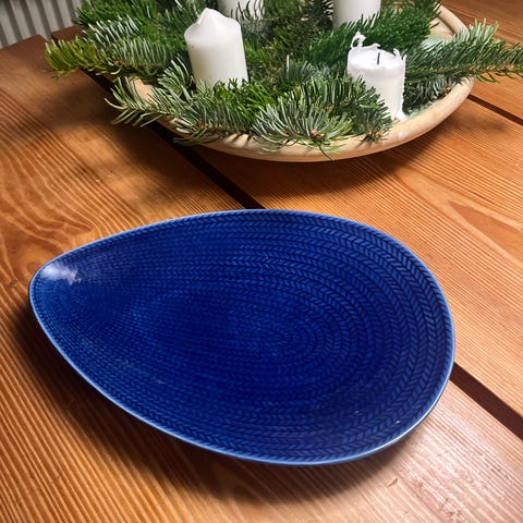 Rørstrand Blå Eld / Blå Ild Serveringsfad. Måler ca. 35 cm x ca.24 cm. Blå Eld / Blå Ild designet af Hertha Bengtsson, små slidmærker.