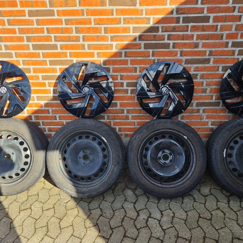 Originale VW stålfælge med "Continental Eco Contact 5" kvalitets dæk, der næsten ikke har kørt. God stand og masser af km tilbage i dem/ca. 7mm. Centerhul 57,1 mm og ET 35. De har før siddet på en VW Up, men passer også på mange andre VW modeller og mærker. Fast pris