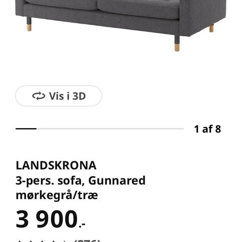 Ikea Landskrona - 3personers sofa, 2 lænestole og puf