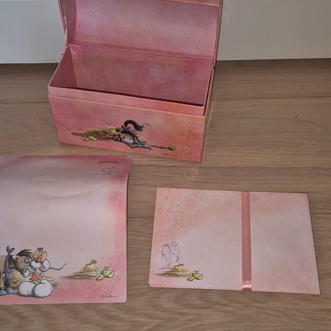 En masse velholdt brevpapir, blokke og æsker med Didl.