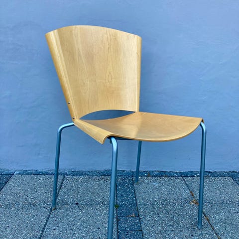2 spisebords stole i kirsebærtræ. Designet af Nanna Ditzel. Sæderne er gået i stykker og skal repareres. Stellene er fine. Ryglæn har nogle ridser.