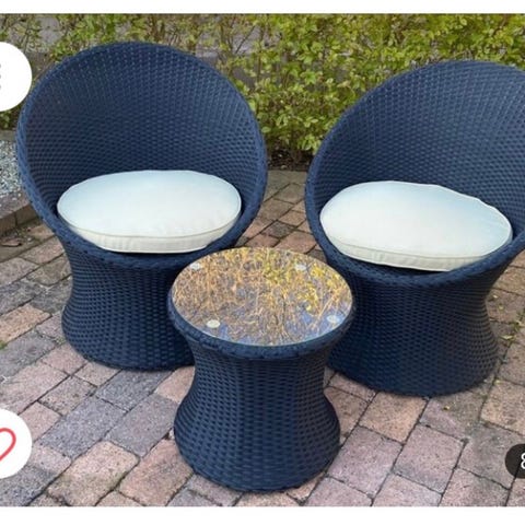 Sort flet havemøbelsæt med to stole og plantekrukke
