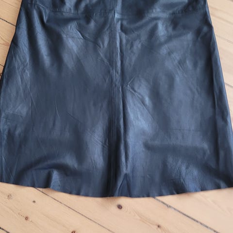 Læder nederdel, str. 42, Furst, Sort, Lammeskind og for i polysatin, Ny med skilt. Nypris 1199. Længde 54 livvidde ca 2x45. super lækker blød og med inderfor. ægte lammeskind. med lommer og lynlås.