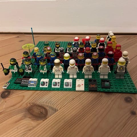 Samling på 42 Lego mini figurer, nogle er lettere afbleget af sol. Sælges helst samlet. Byd gerne