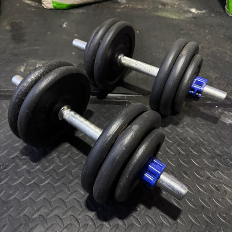 Håndvægte – 44 kg total (2 stk. á 22 kg) inkl. faste låse