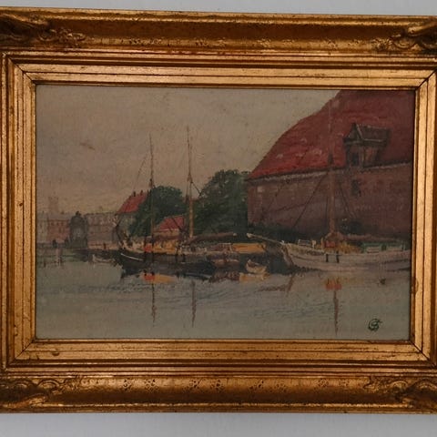 Helge Nielsen (1893-1980) - Oliemaleri - Redningsbåd.