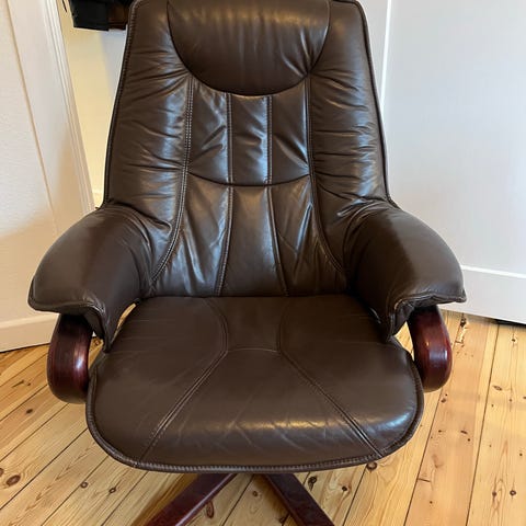 Lænestol i brunt læder fra IKEA