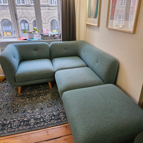 Grå modul boucle sofa fra ikke rygerhjem ej eller ingen husdyr.