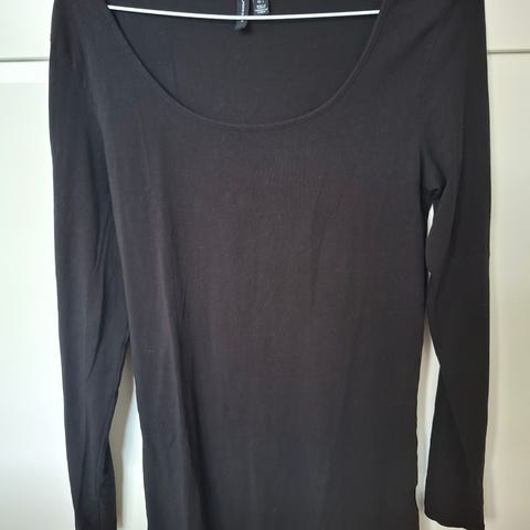 Helt ny sort bluse fra Vero Moda med blondeærmer og knap-lukning i nakken. str. L. 100% polyester - så falder flot.