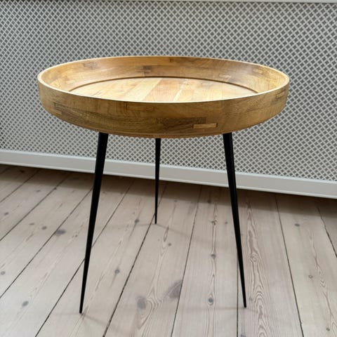 Bæredygtigt høstet naturlig mango træ med en Sirka grå finish og stålben.