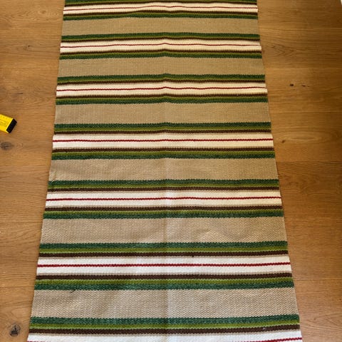Lækkert flot uldtæppe, helt som nyt, i lysegrå og mørkegrå farve, i 100% uld sælges for 250 kroner. Størrelse: 80 x 160 cm.