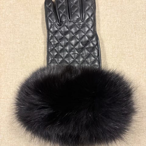 Meget elegante skindhandske fra Randers Handsker - pyntet med en grøn ræve pelskant af Jane Eberlein, SAMARKAND i København.