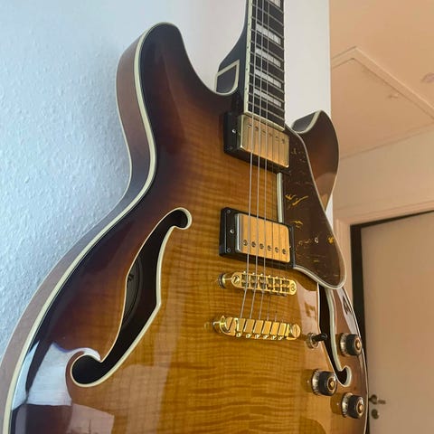 Elektrisk saz i rigtig god stand. Flot udseende og klar, kraftig lyd – perfekt til både øvning, live og studiebrug.