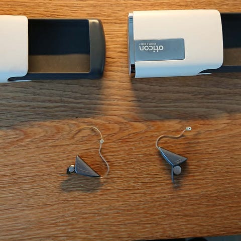 Oticon Minirite høreapparater, med fjernbetjening/streamer til mobilen.