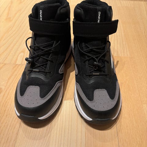 Viking hjemmesko til børn i størrelse 36. Skoene er unisex og har en sort farve med en blød, pelslignende kant. De er designet til indendørs brug med en skridsikker sål.