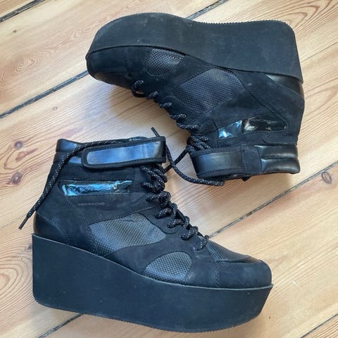 Vagabond sneakers i størrelse 40. Skoene har en camel farve og er designet med en platform sål. Materialet er læder og tekstil.