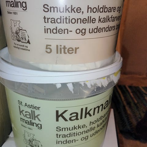 Har ca. 2 liter blå kalkmaling til overs, som jeg ikke får brugt. Farven er virkelig flot og malingen er stadig helt fin. Perfekt hvis du står og ville have en flot blå maling med liv i væggen.