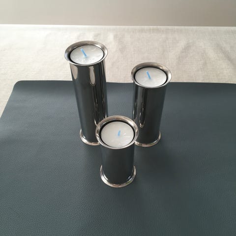 3 MENU lysestager i stål med gl. Slagelses kommunes logo. Til daglig brug eller som samle objekt.