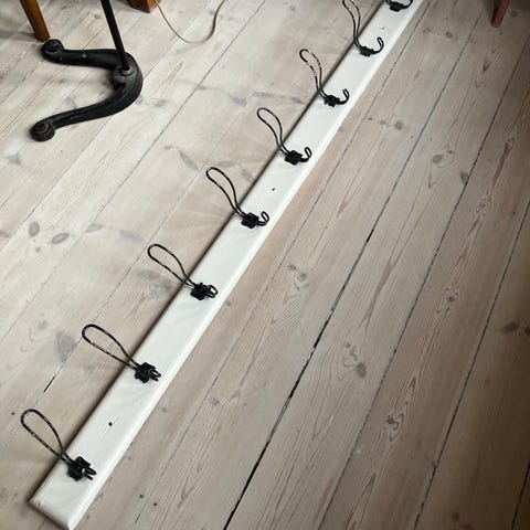 Knagerække fra 70'erne i massivt fyrretræ til salg.