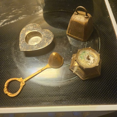 Klokke i pletsølv.H 10 cm, B 4 cm.Gå til varen, for flere billeder.(Montre).