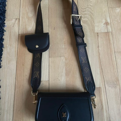 Fast pris, kan sendes eller afhentes i Glostrup. Smuk sort taske med hvidt logo og guld hardware. Kun brugt få gange, så er som ny.